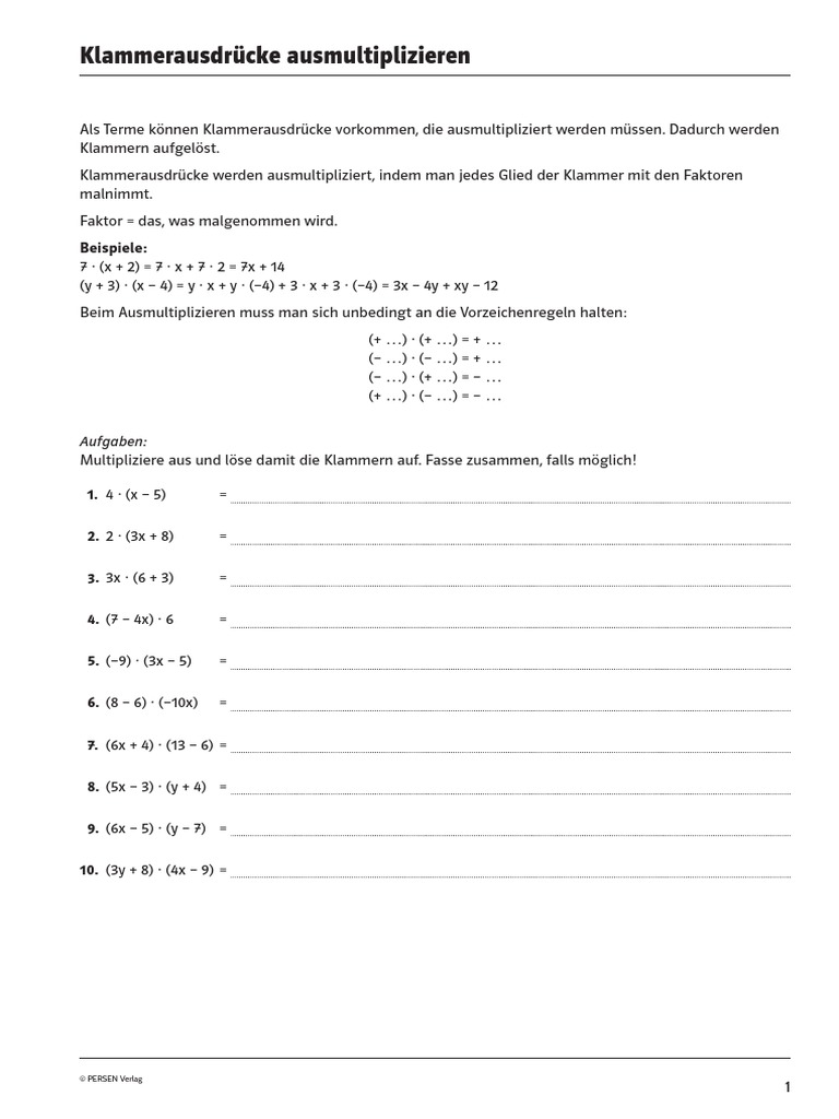 Klammerausdrücke ausmultiplizieren Rechnen mit Klammern in Termen