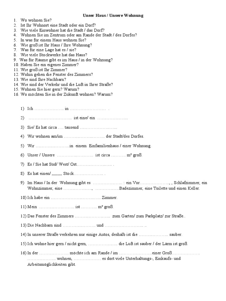 5) Wir …………………..in einem Einfamilienhaus / einer Wohnung.