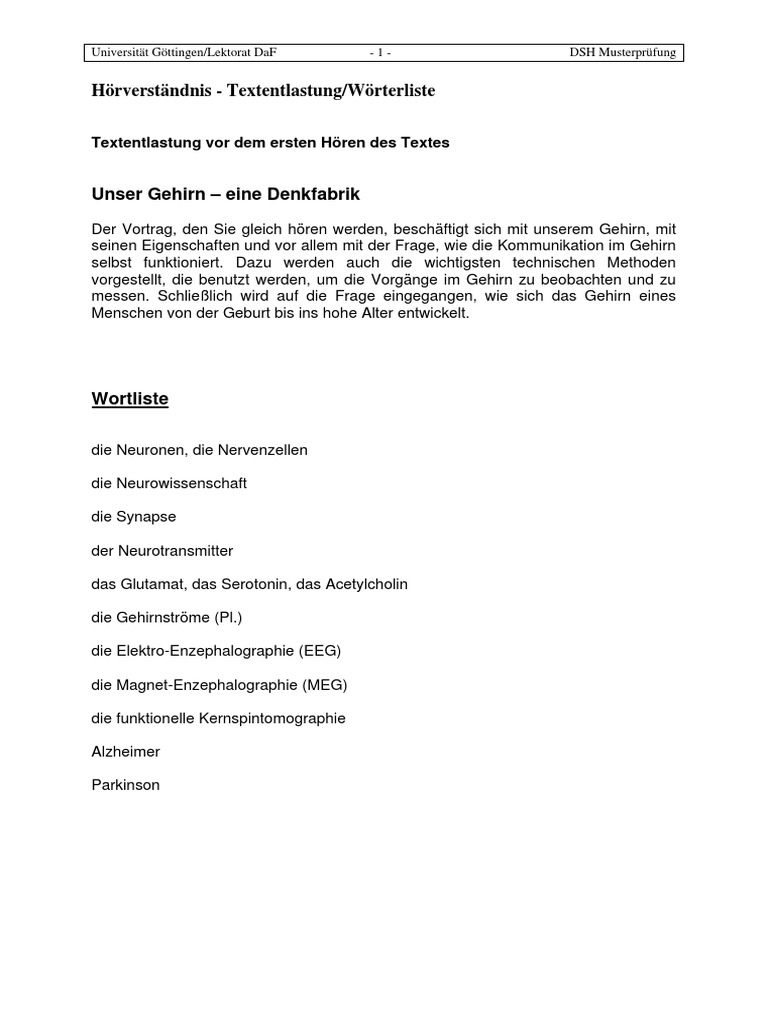 Universität Göttingen/Lektorat DaF - 26 - DSH Musterprüfung
