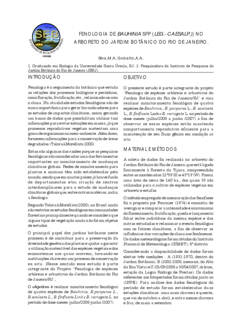 Fenologia é o seguimento da botânica que estuda O presente estudo é parte integrante do projeto