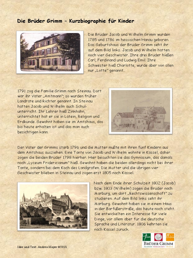 Die Brüder Grimm – Kurzbiographie für Kinder