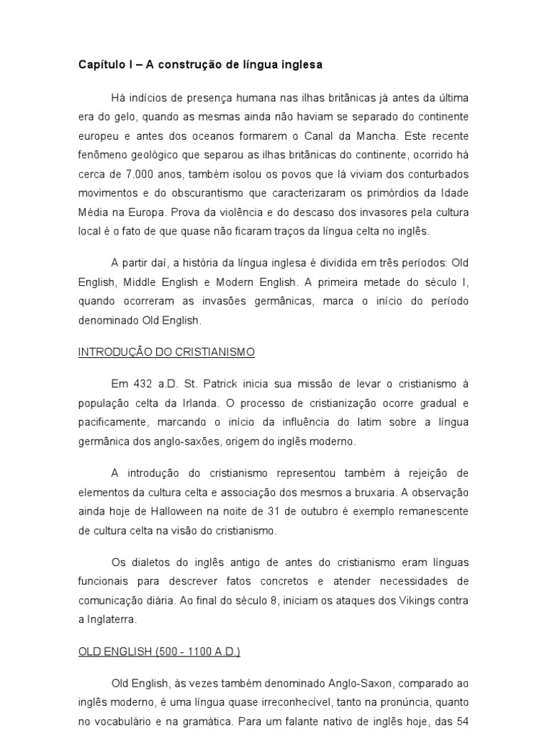 Capítulo I – A construção de língua inglesa