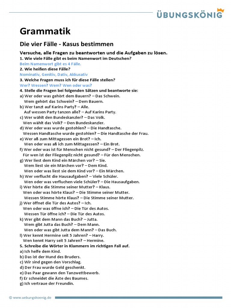 1. Wie viele Fälle gibt es beim Namenwort im Deutschen?