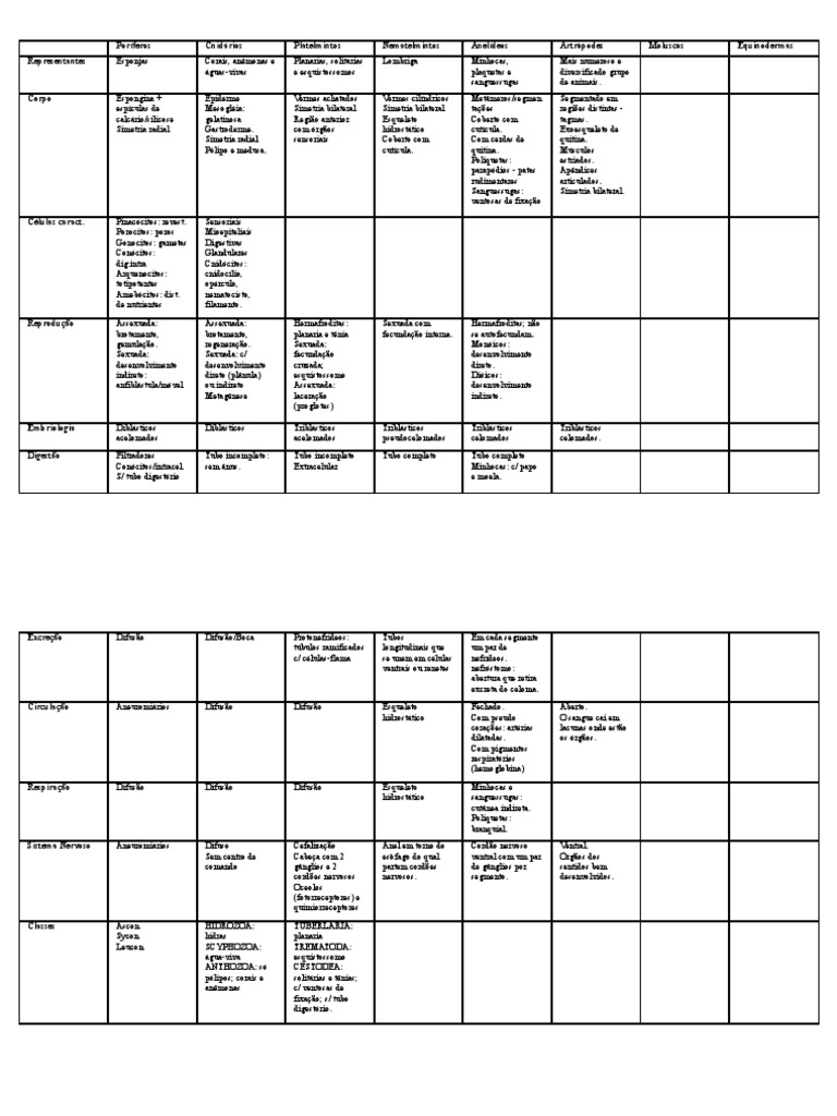 Corpo Espongina + Epiderme Vermes achatados Vermes cilíndricos Metâmeros/segmen Segmentado em