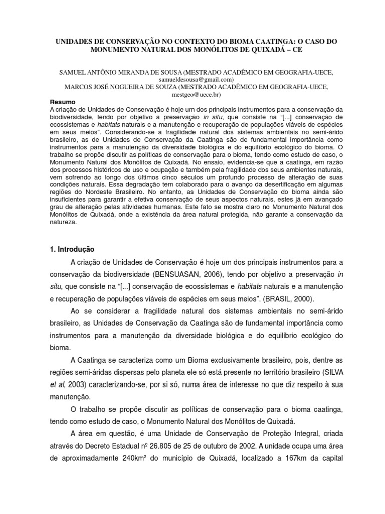 brasileiro, as de Unidades de Conservação da Caatinga são de fundamental importância como