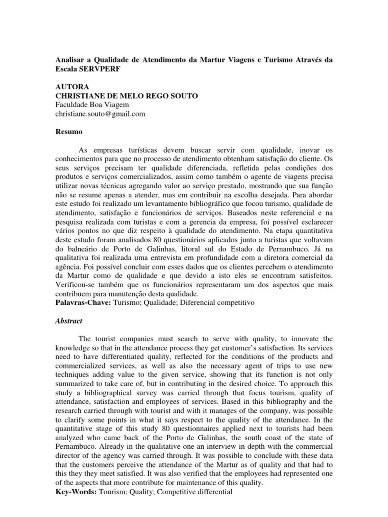 realidade ou indícios? Um estudo em agência de viagem. Dissertação (Mestrado),
