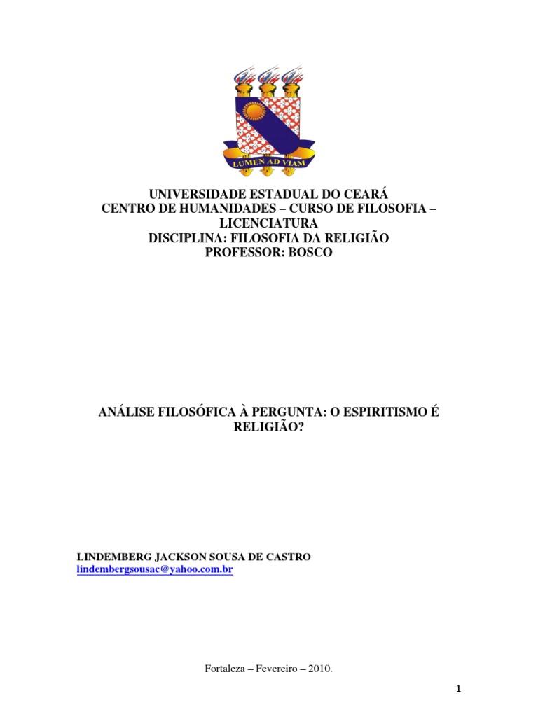 ANÁLISE FILOSÓFICA À PERGUNTA: O ESPIRITISMO É