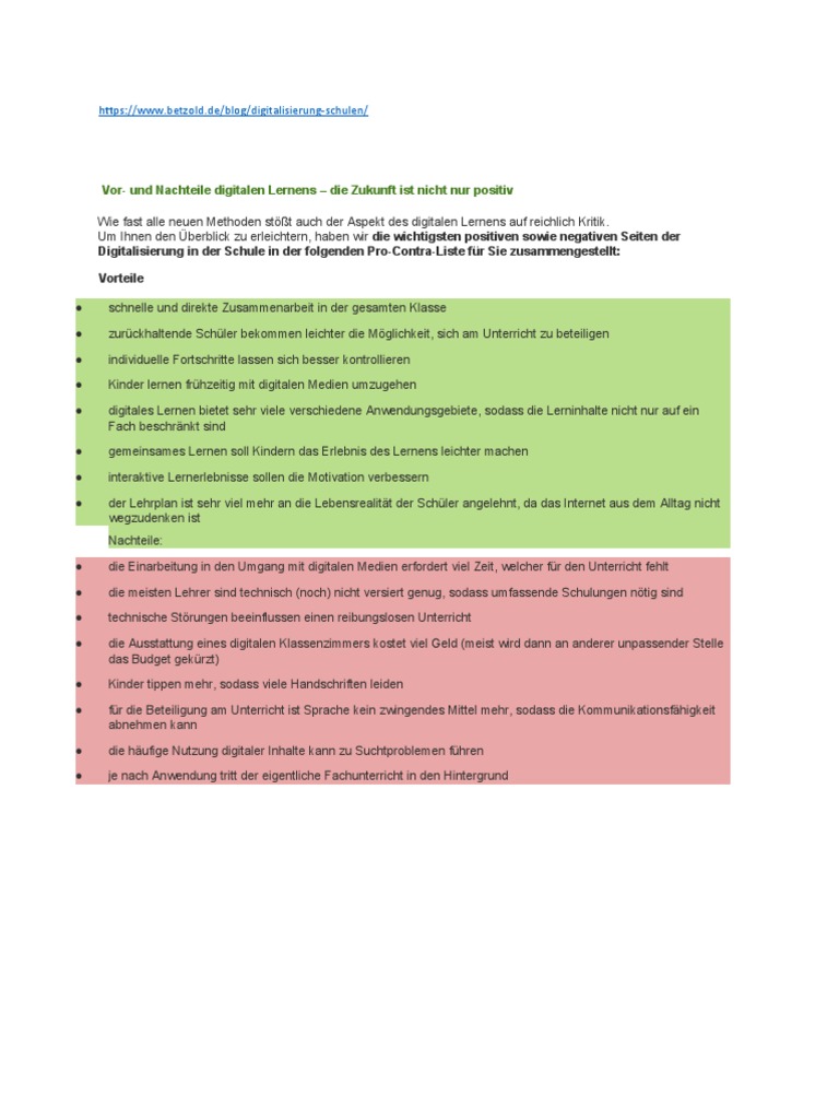 Digitalisierung in der Schule in der folgenden Pro-Contra-Liste für Sie zusammengestellt: