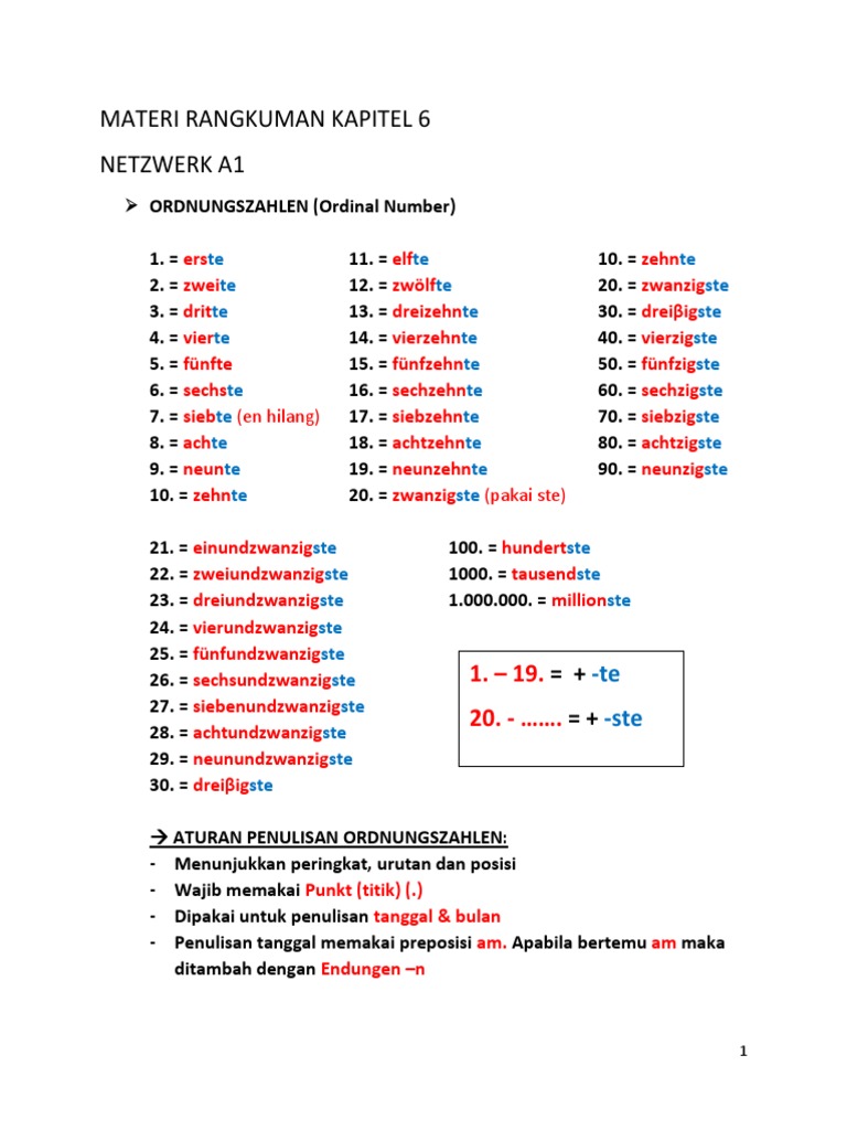 → ATURAN PENULISAN ORDNUNGSZAHLEN: