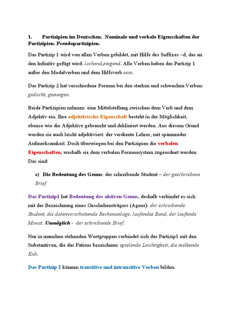 Aufmerksamkeit. Doch überwiegen bei den Partizipien die verbalen
