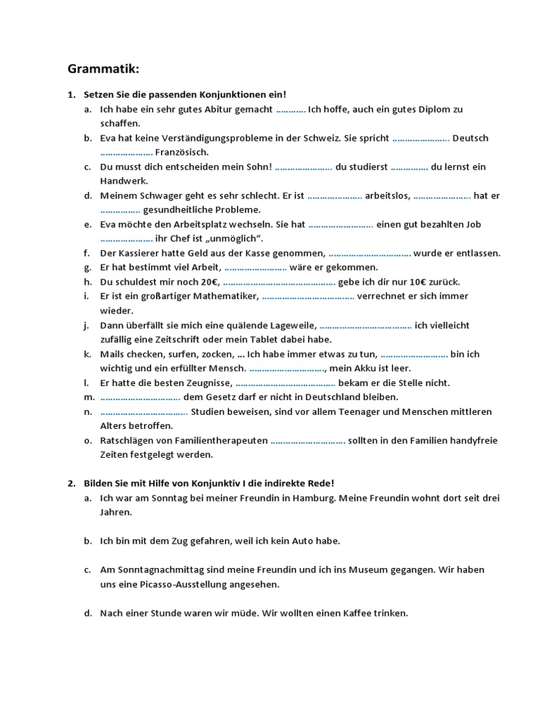 1. Setzen Sie die passenden Konjunktionen ein!
