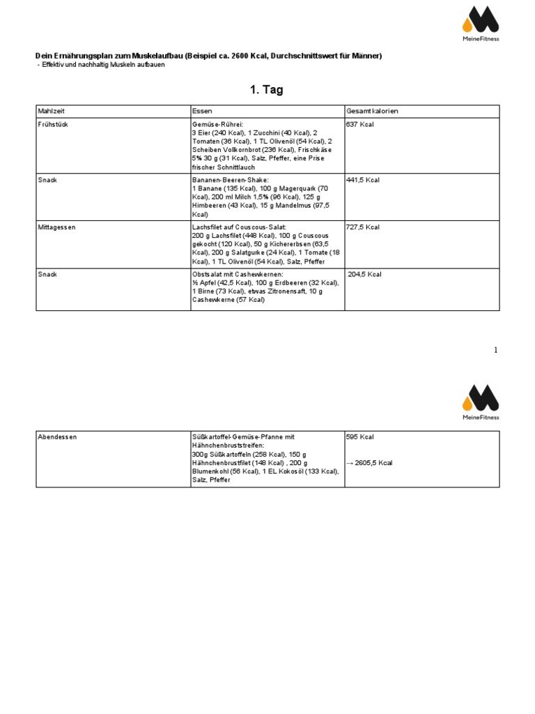 Dein Ernährungsplan zum Muskelaufbau (Beispiel ca. 2600 Kcal, Durchschnittswert für Männer)