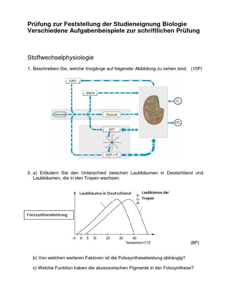Verschiedene Aufgabenbeispiele zur schriftlichen Prüfung
