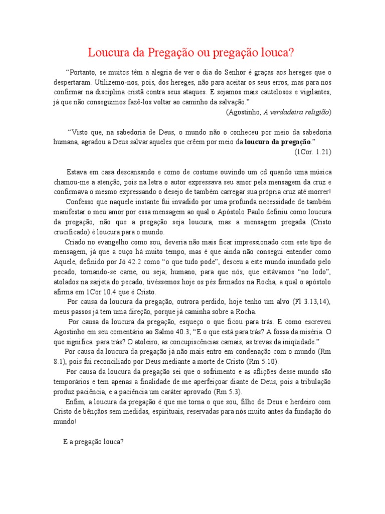 (loucura da pregação) se torna pela força de seu próprio discurso uma pregação louca,
