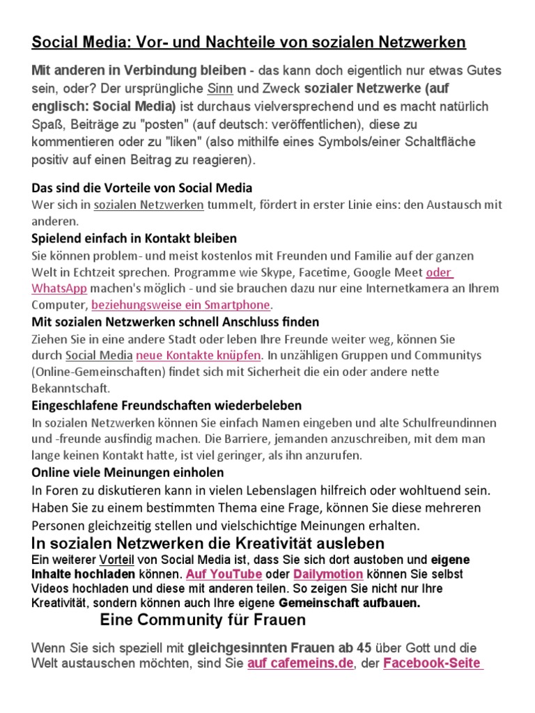 Doch so schön und kommunikativ soziale Medien auch sind: