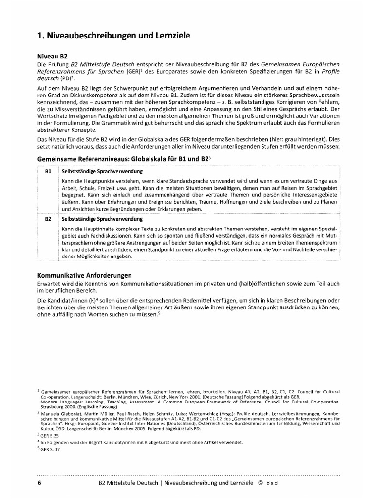 as Niveau fr die Stufe B2 wird in der Globalskala des GER folgendermaBen beschrieben (hier: grau hinterlegt). Dies