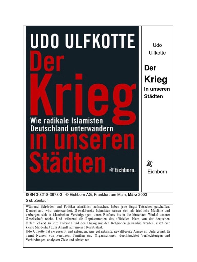 Whrend Behrden und Politiker allmhlich aufwachen, haben jene lngst Tatsachen geschaffen: Deutschland wird unterwandert. Gewaltbereite Islamisten tarnen sich als friedliche Muslime und verbergen sich in islamischen Vereinigungen, deren Einfluss bis in die hintersten Winkel unserer Gesellschaft reicht. Und whrend die Reprsentanten des offiziellen Islam von der deutschen ffentlichkeit f ihre Toleranz und den Dialog mit den Religionen gewrdigt werden, r r stet eine kleine Minderheit zum Angriff auf unseren Rechtsstaat. Udo Ulfkotte hat sie gesucht und gefunden, jene gut getarnte, gewaltbereite Armee im Untergrund. Er nennt Namen von Personen, Familien und Organisationen, durchleuchtet Verflechtungen und Verbindungen, analysiert Ziele und Absich ten.