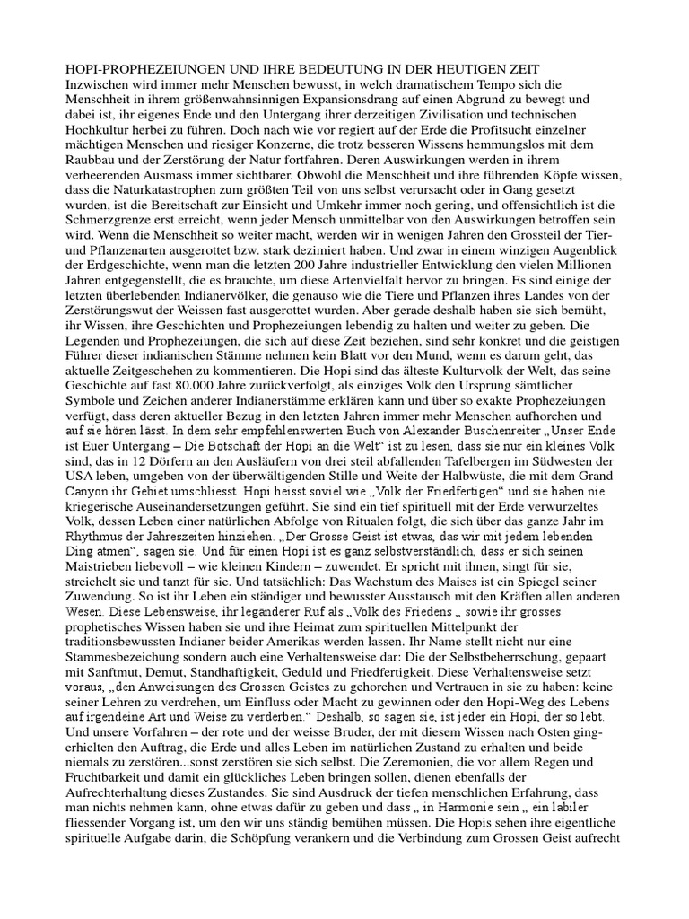 arglosen Lebensweg veranschaulichen müssen. Die Prophezeiung der Hopi hat vor langem