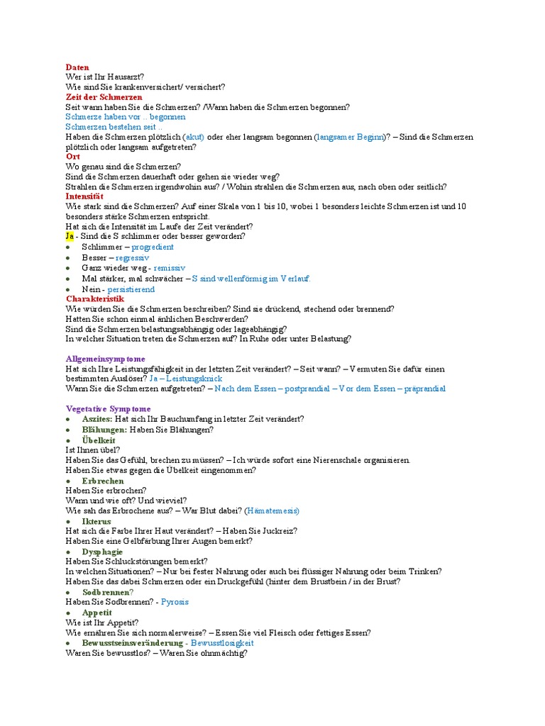 Waren Sie wegen diesen Beschwerden beim Hausarzt? – Wann war das? – Was wurde untersucht? –