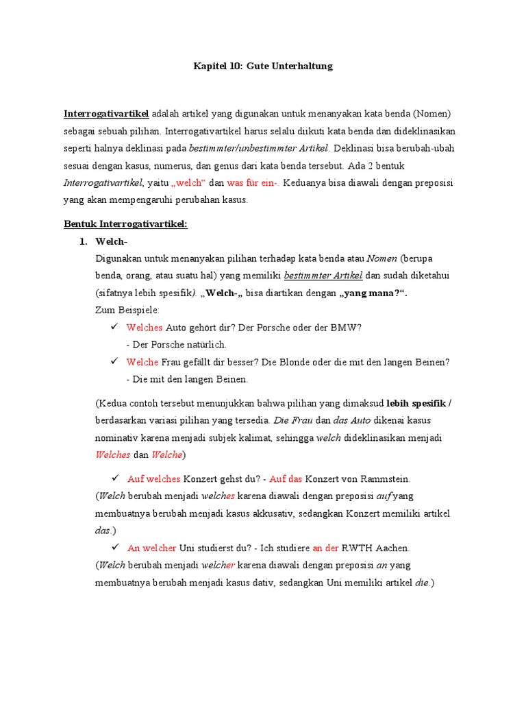 Interrogativartikel, yaitu „welch“ dan was für ein-. Keduanya bisa diawali dengan preposisi
