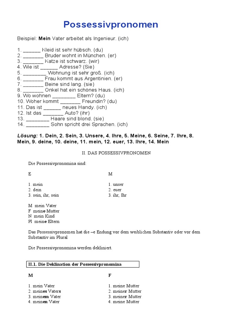 Ü 1: Ergänzen Sie mit der richtigen Form des Possessivpronomens:
