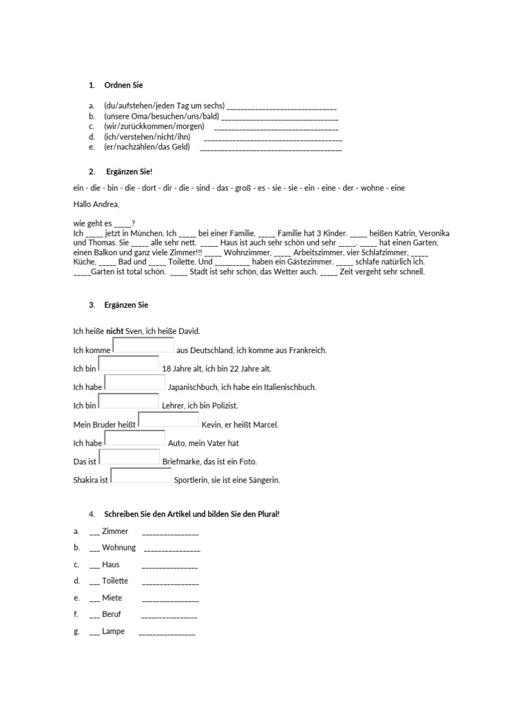 Küche, _____ Bad und _____ Toilette. Und __________ haben ein Gästezimmer. _____ schlafe natürlich ich.