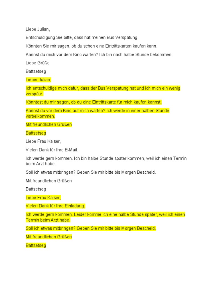 Ich werde gern kommen. Leider komme ich eine halbe Stunde später, weil ich einen