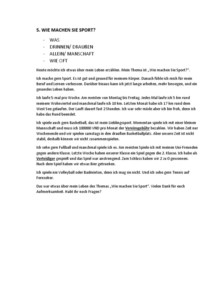 5. WIE MACHEN SIE SPORT?