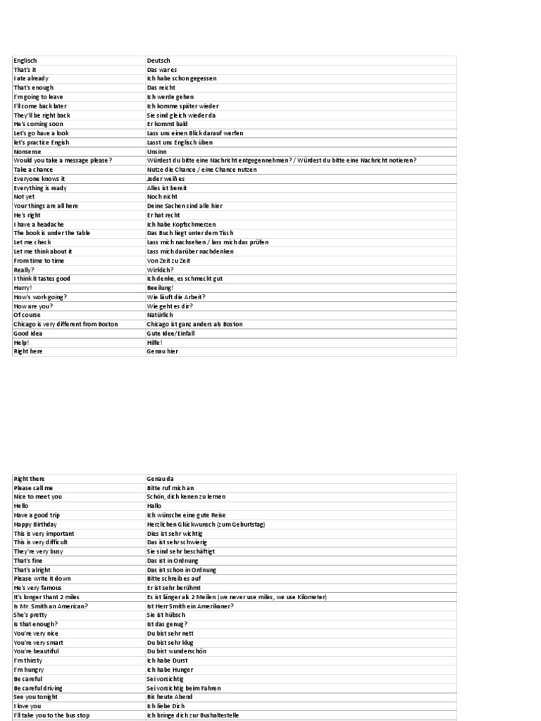 Very good, thanks Sehr gut, danke