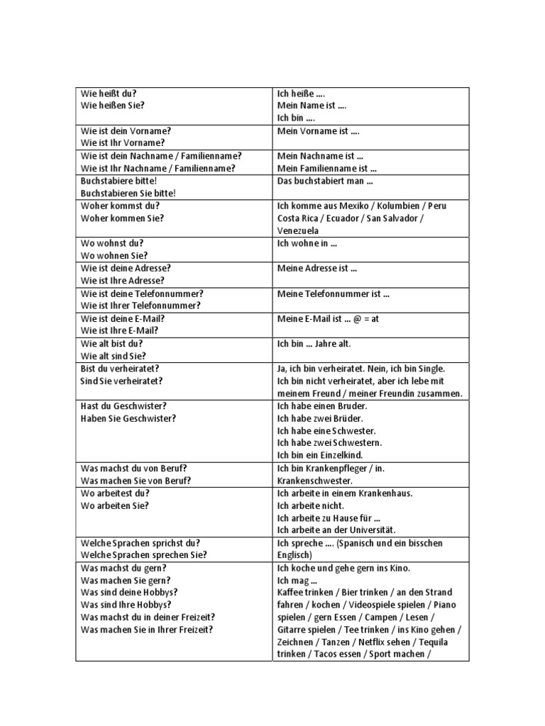 Woher kommst du? Ich komme aus Mexiko / Kolumbien / Peru