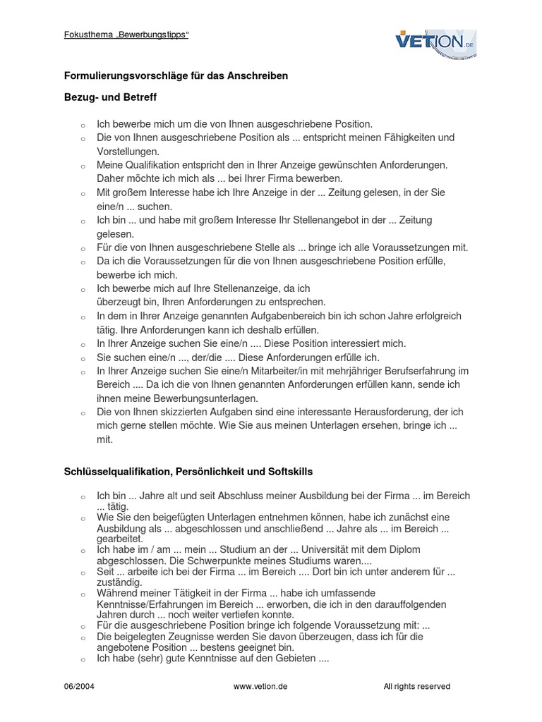 o Für die von Ihnen ausgeschriebene Stelle als ... bringe ich alle Voraussetzungen mit.