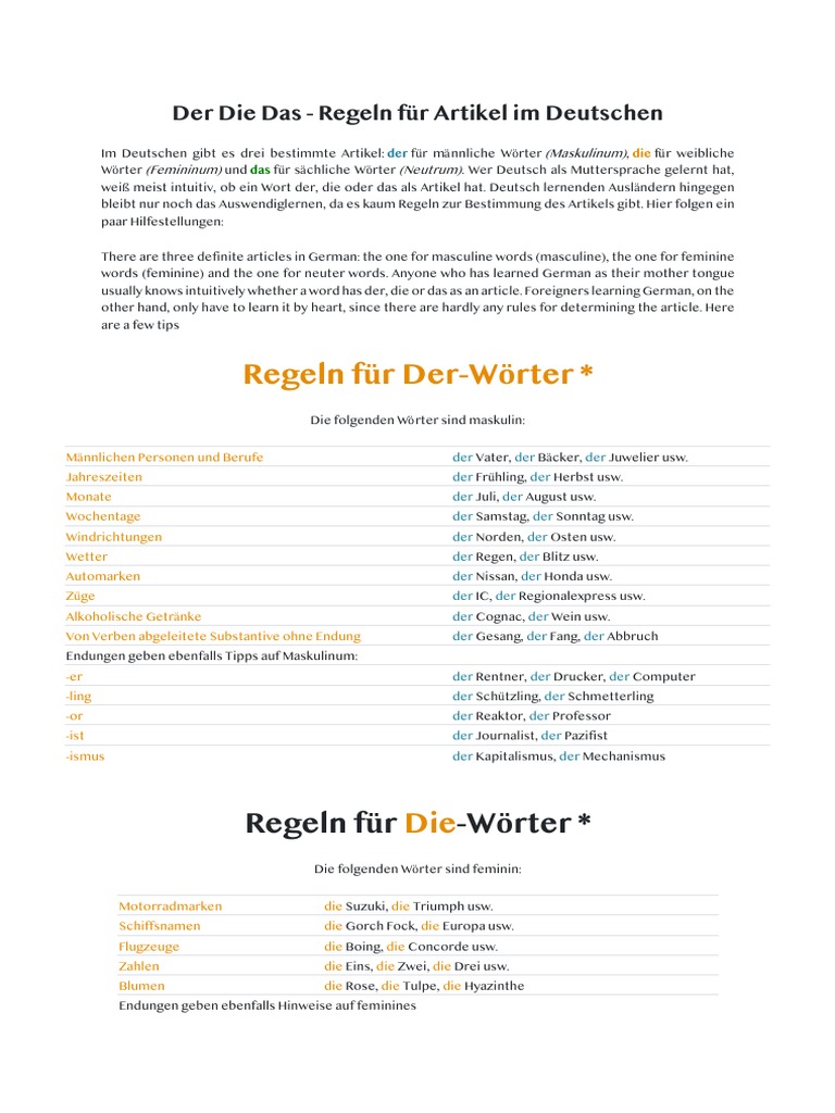 Der Die Das - Regeln für Artikel im Deutschen