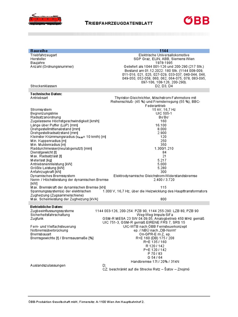 Bestand am 01.12.2022: 180 Stk. (1144 008-009,