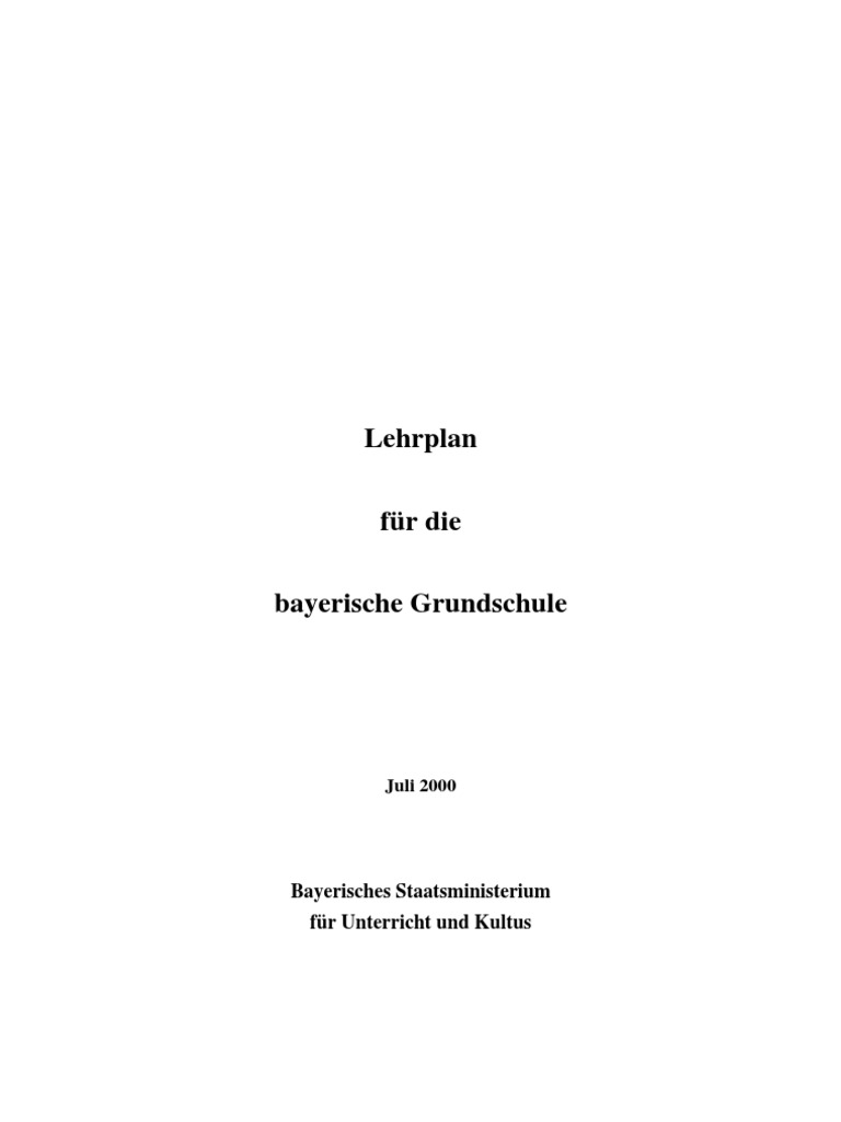 Am Beginn des neuen Jahrtausends verdeutlicht der neue Lehrplan fr die Grundschule somit Auftrag