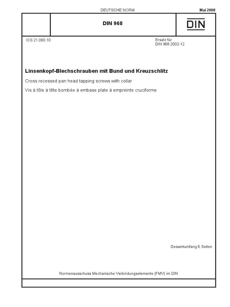 Diese Norm legt die Eigenschaften von Linsenkopf-Blechschrauben mit Bund und Kreuzschlitz, Produkt-