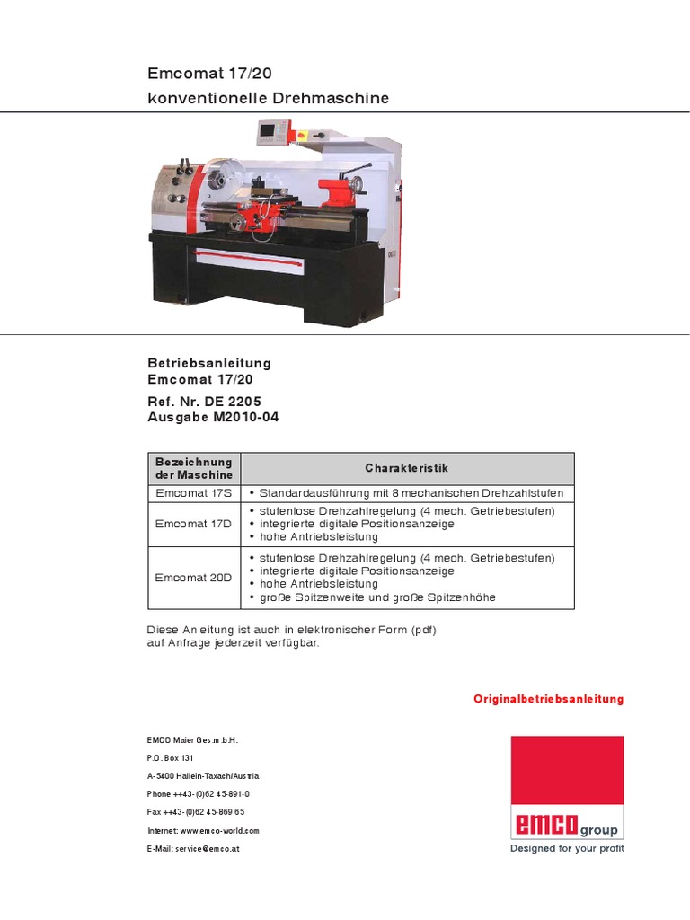 Emcomat 17S/17D.................................................................25 Nachstellarbeiten..................................................................... 55