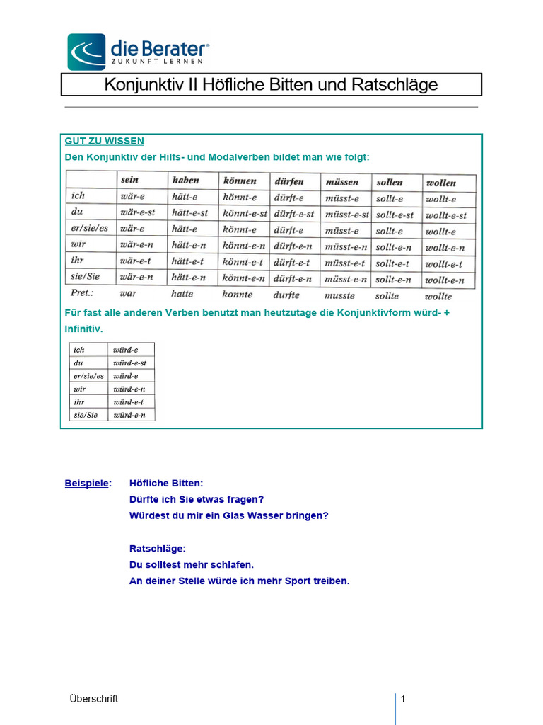 Konjunktiv II Höfliche Bitten und Ratschläge
