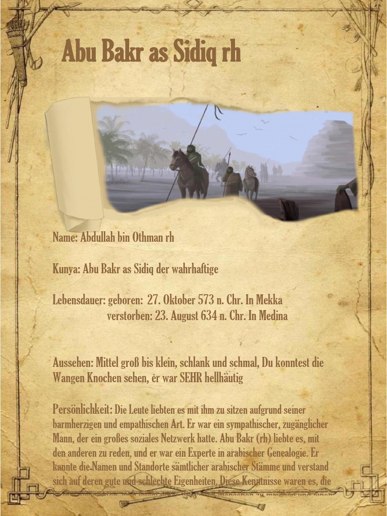 Abu Bakr (rh) wurde in einer ziemlich reichen Familie geboren und etablierte sich als