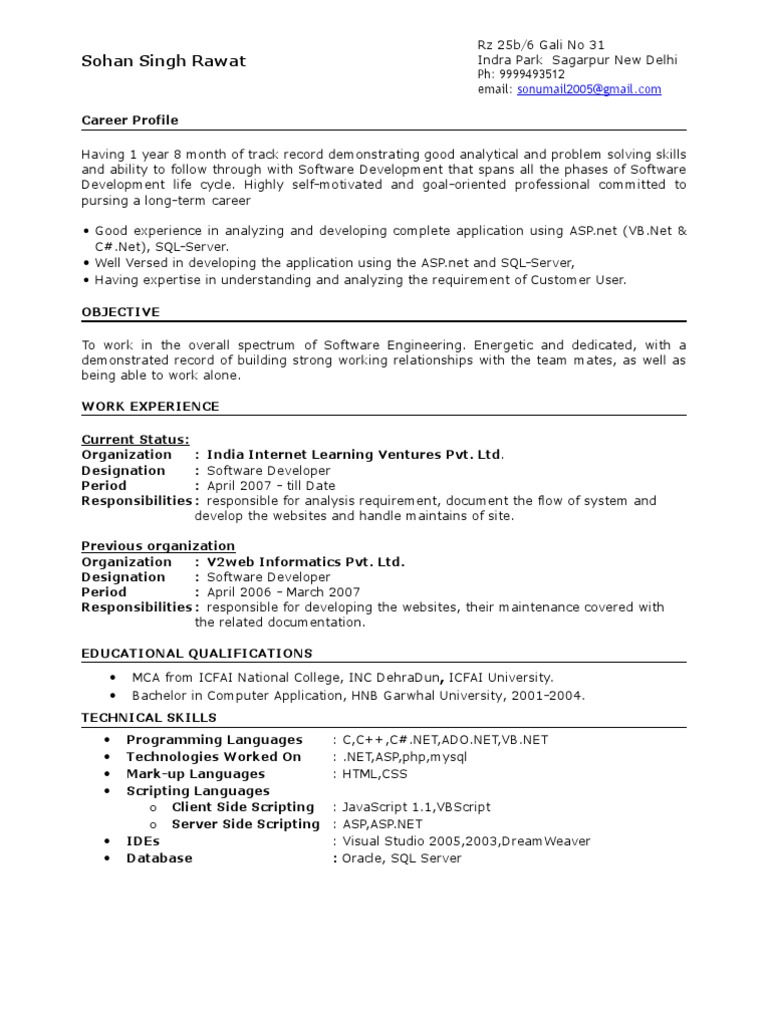 • Programming Languages : C,C++,C#.NET,ADO.NET,VB.NET
