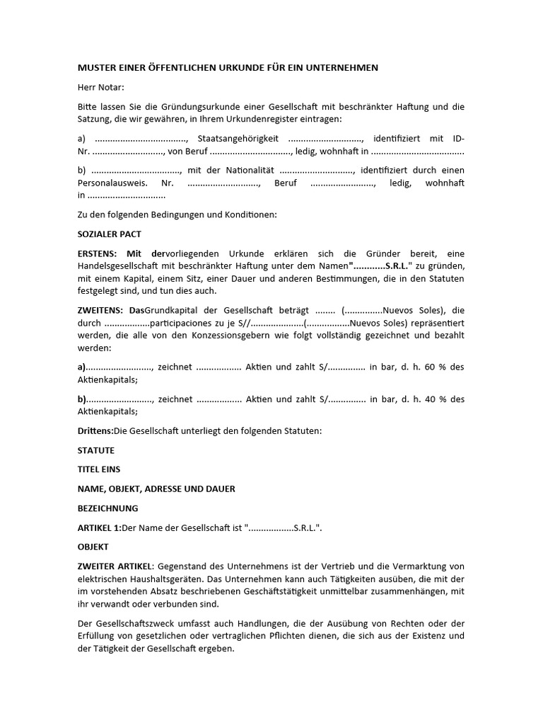 Muster Einer Öffentlichen Urkunde Eines Unternehmens