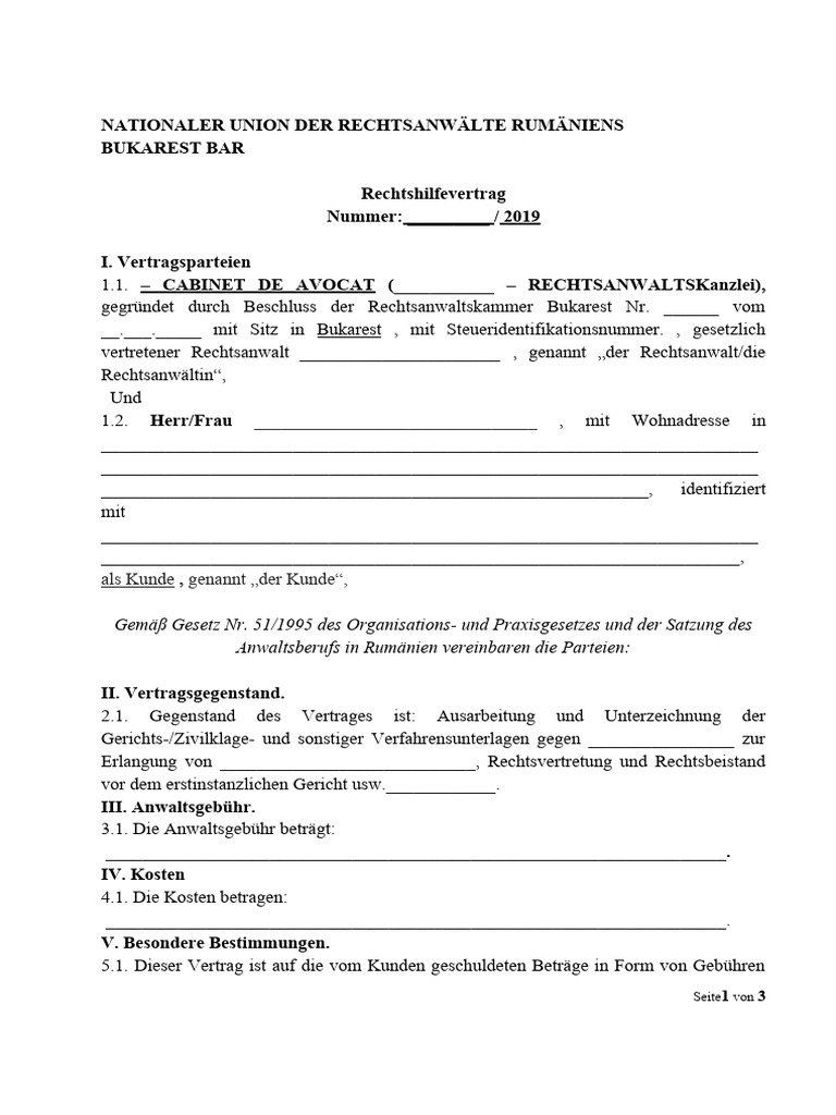 Contract de Asistenta Juridica - DEUTSCH