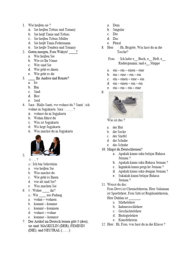 a. wie heiβen Sie c. Inginkah kamu pergi ke Jerman ?