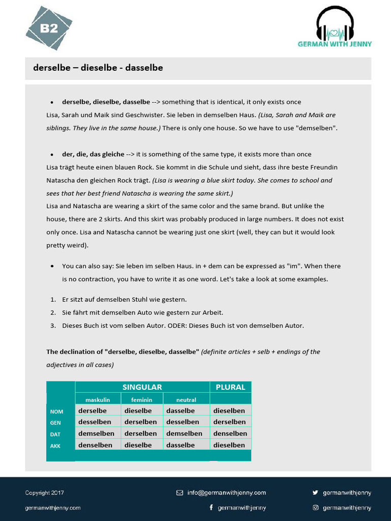 derselbe – dieselbe - dasselbe
