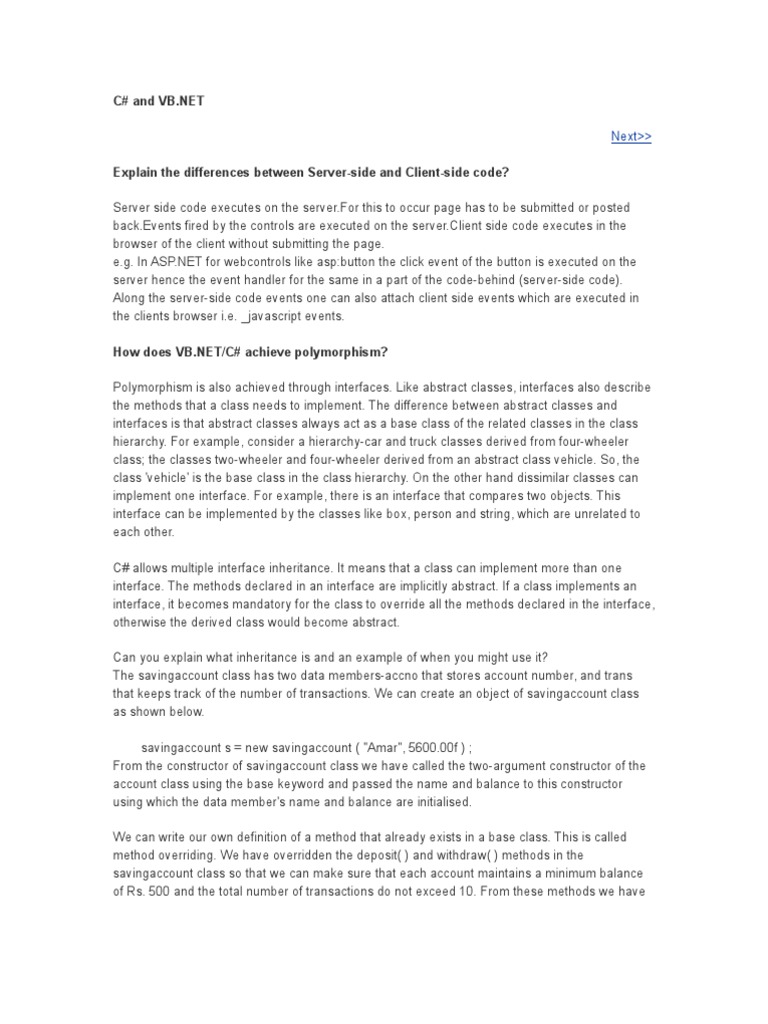 merged. In VB.NET we can use implements keyword for inheritance, while in C# we can use the