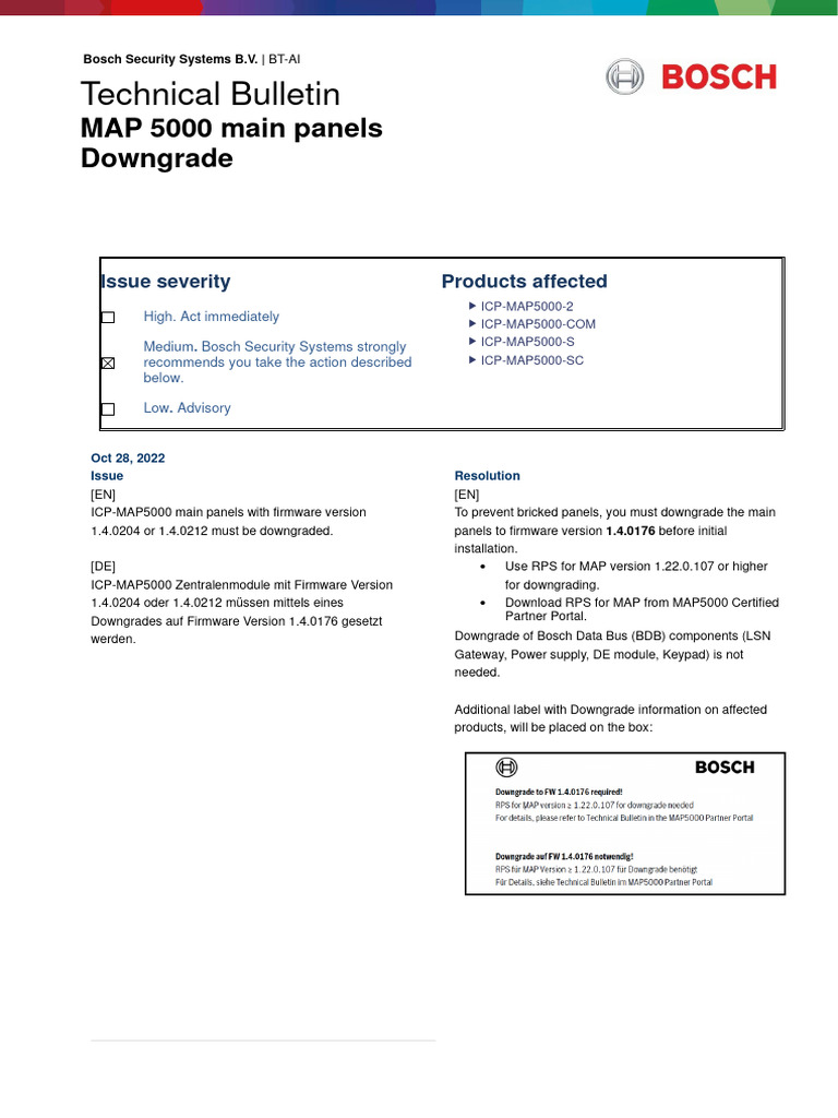 Medium. Bosch Security Systems strongly ICP-MAP5000-S