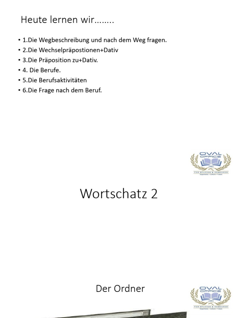 • 1.Die Wegbeschreibung und nach dem Weg fragen.
