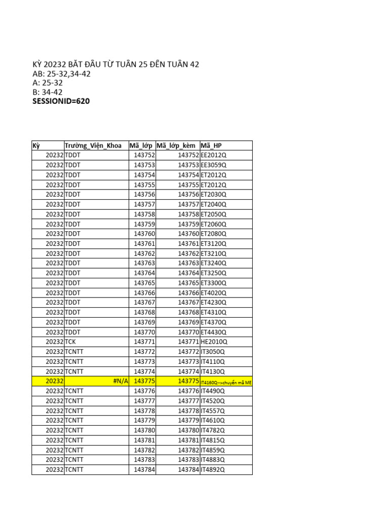 KỲ 20232 BẮT ĐẦU TỪ TUẦN 25 ĐẾN TUẦN 42