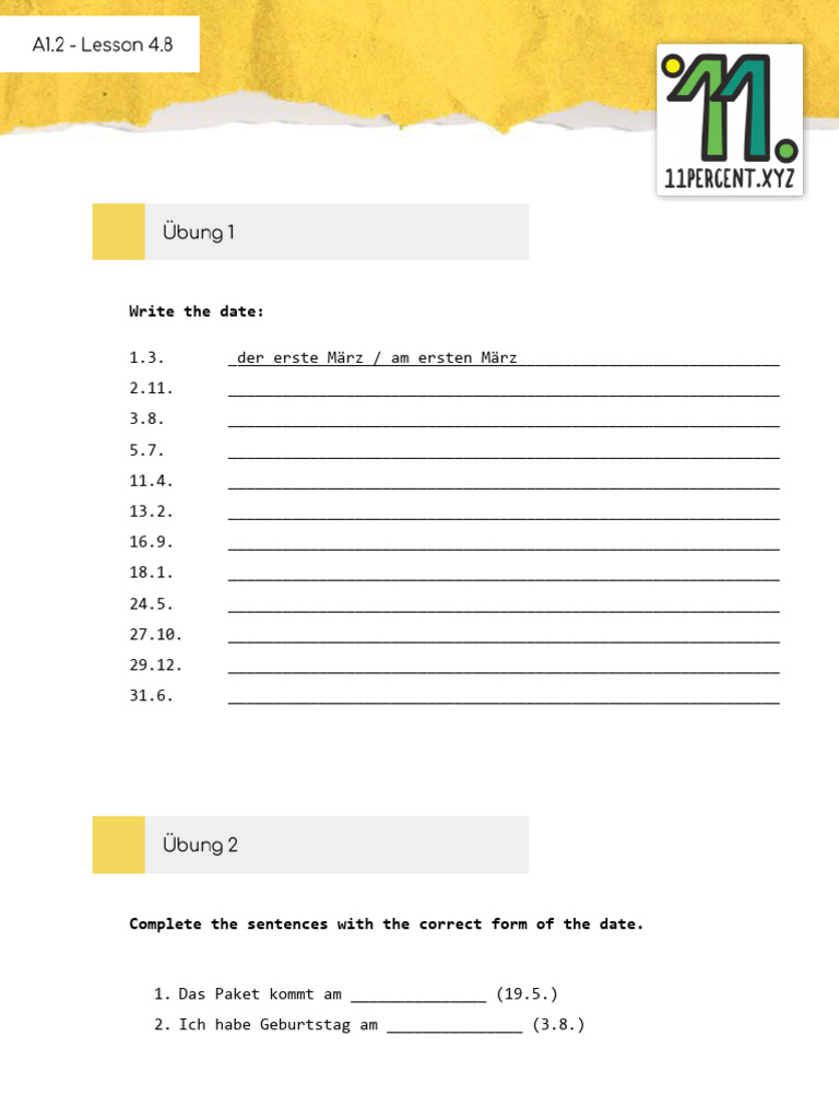 1.3. _der erste März / am ersten März_____________________________