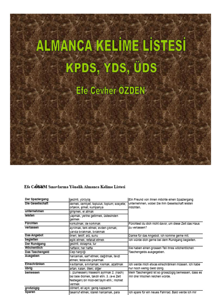 ÖSYM Sınavlarına Yönelik Almanca Kelime Listesi