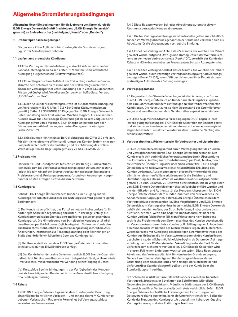 Kunden sowie für E.ON Energie Österreich gilt ab diesem Zeitpunkt eine 2.2 Diese Allgemeinen Stromlieferbedingungen (AGB) liegen in ihrer